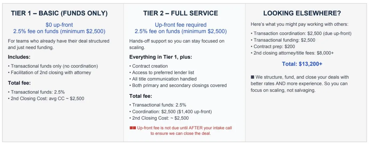 TC services, attorney, DSCR lenders, paperwork and funding structure included